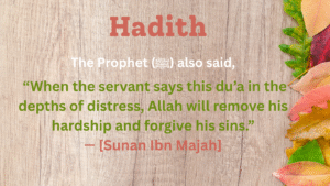 The Prophet (ﷺ) also said, “When the servant says this du’a in the depths of distress, Allah will remove his hardship and forgive his sins.”