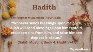 This Hadith clearly shows how powerful it is to recite Durood even once. It promises that Allah will bless you many times over, remove your sins, and raise your spiritual status by several degrees. This is a beautiful reminder of how much Allah values this simple act of love and devotion.