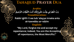 After completing Tahajjud, you may offer any personal to Allah. A commonly recited Qur’anic dua is: